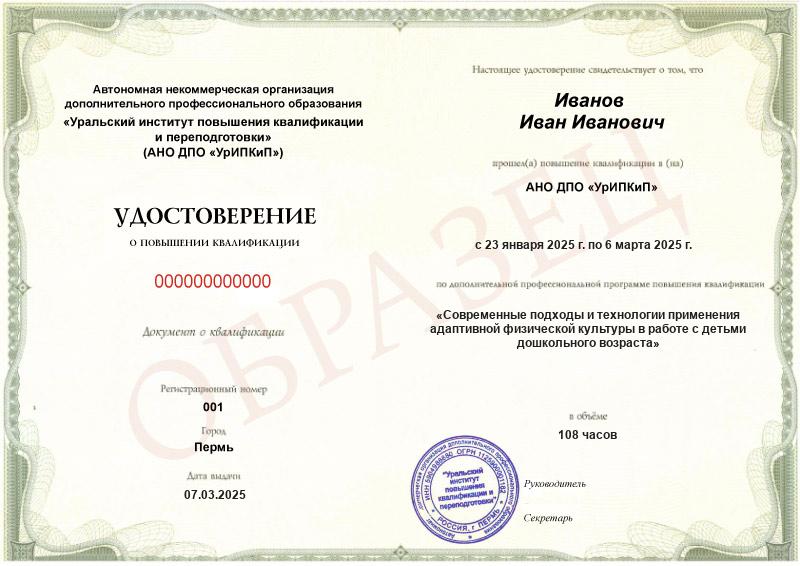 Заполненные образцы выдаваемых документов есть в описании учебных курсов и на странице «Лицензия. Документы», а также на главной странице официального сайта АНО ДПО «УрИПКиП».