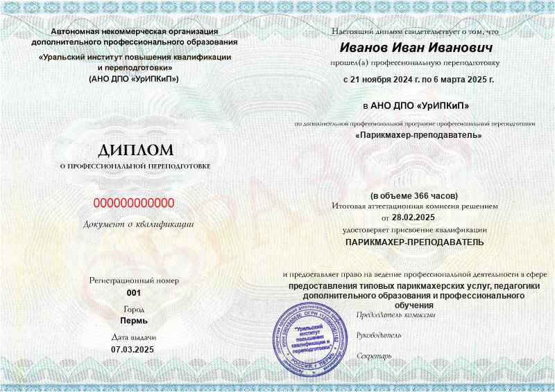 Парикмахер-преподаватель (366ч)